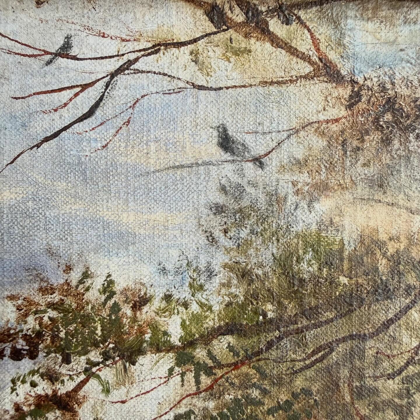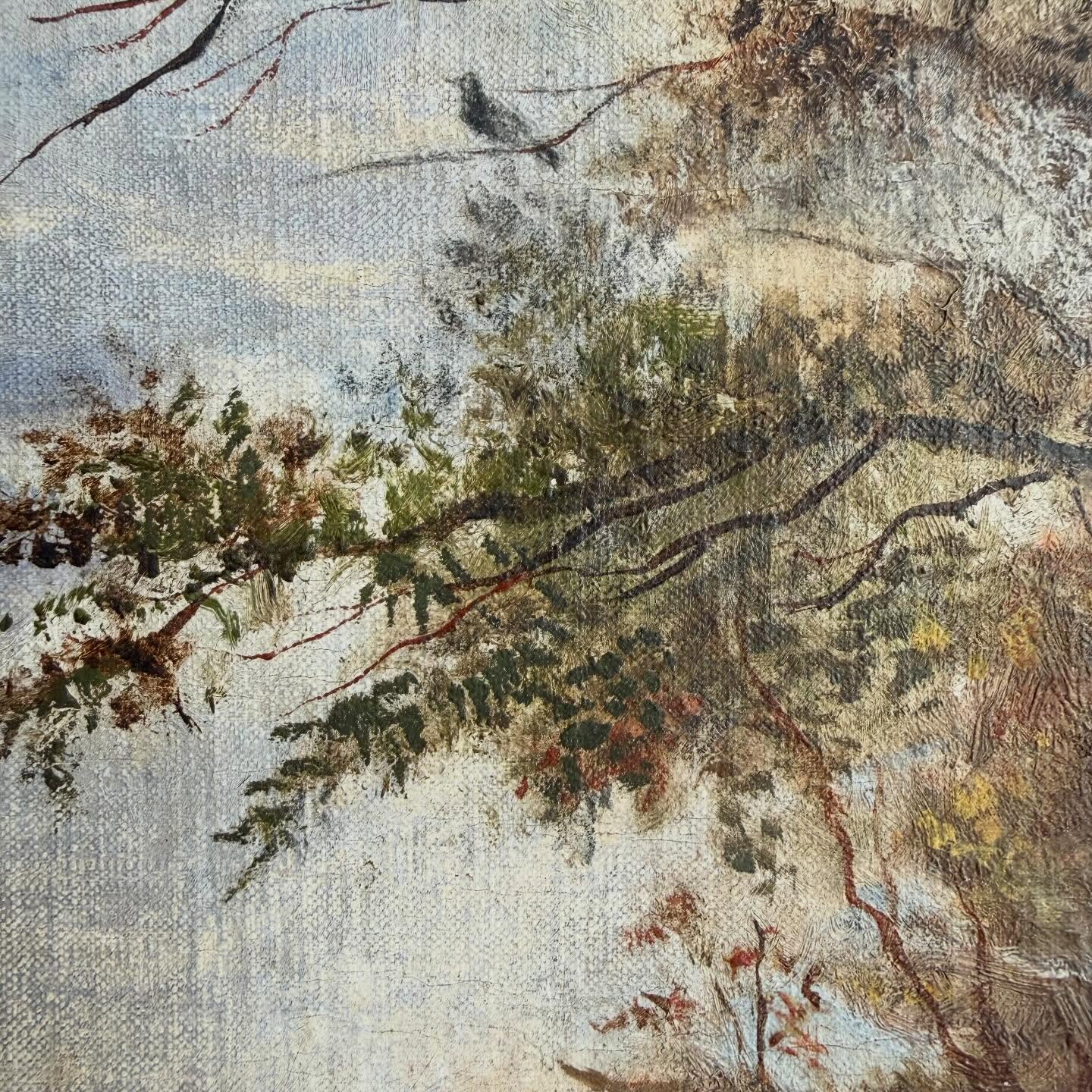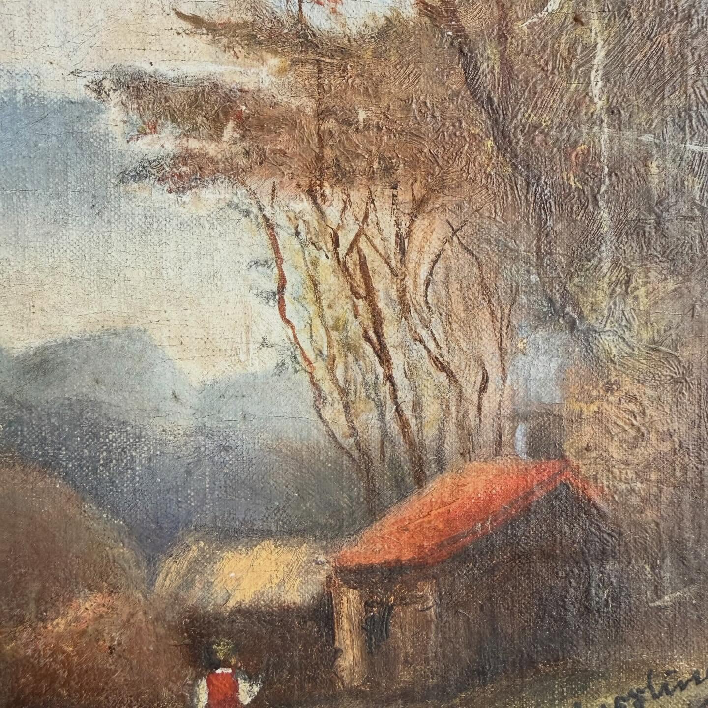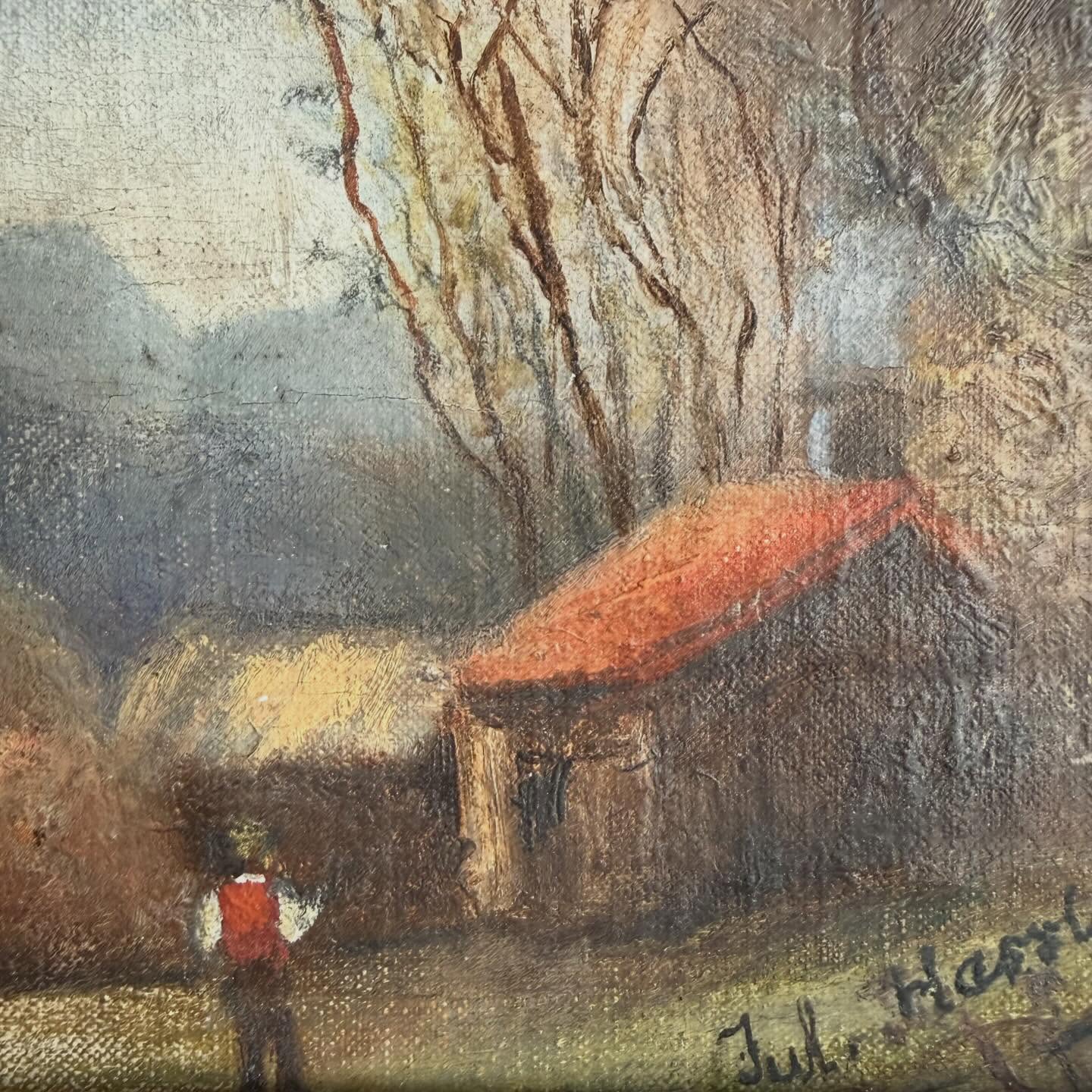 Ulei pe panză montată pe panou, ramă din lemn ebonizat cu bordură aurită, craquelure fină, mici uzurii ale ramei)